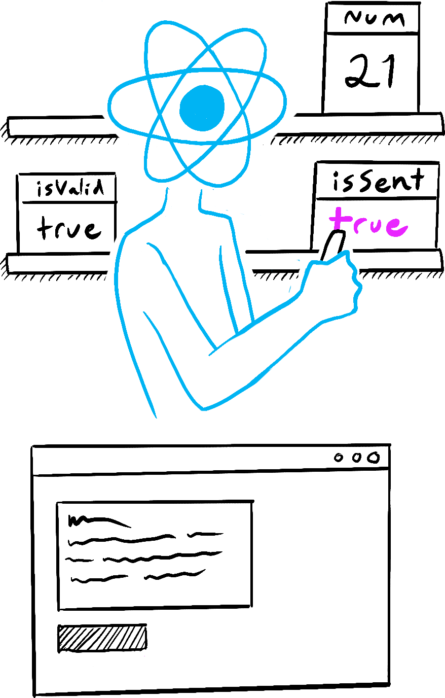 import { useState } from 'react'; export default function Form() { const [isSent, setIsSent] = useState(false); const [message, setMessage] = useState('Привіт!'); if (isSent) { return <h1>Ваше повідомлення — в дорозі!</h1> } return ( <form onSubmit={(e) => { e.preventDefault(); setIsSent(true); sendMessage(message); }}> <textarea placeholder="Повідомлення" value={message} onChange={e => setMessage(e.target.value)} /> <button type="submit">Надіслати</button> </form> ); } function sendMessage(message) { // ... }